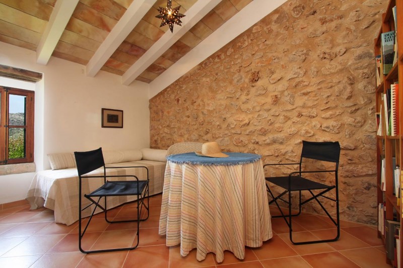 Diese Finca Mallorca ist ein 250 Jahre altes Landhaus, das komplett renoviert worden ist. Die Eigentümer haben den Charme und Charakter des Anwesens dadurch aufrechterhalten, dass sie viele Originalbauteile verwenden haben. Dadurch ist ein natürliches und rustikales Ambiente erhalten geblieben, wobei die modernen Aspekte einen komfortablen Aufenthalt garantieren. Von der Frontterrasse aus betritt man das Haus durch eine Doppelholztür, die zu einem grossräumigen Wohnbereich führt, der mit Terracottafliesen bestückt ist. Die geschmackvolle Einrichtung, einschliesslich Satelitenfernseher, verleiht einen gemütlichen Charakter. Daneben befindet sich ein seperater Essraum, der direkten Zugang zu einer Terrasse bietet. Neben diesem Raum befindet sich eine modern ausgestattete Küche, u.a. Eis-und Gefrierschrank, Elektroherd, Gasherd und Geschirrspülmaschine. Linksseitig der Eingangshalle befindet sich ein Zugang zur Garage und einer seperaten Dusche. Im Obergeschoss befinden sich 2 Schlafzimmer mit Doppelbetten, sowie ein Zimmer mit 2 Einzelbetten und ein Badezimmer. Von hier aus hat man einen wundervollen Ausblick auf die spektakuläre Gebirgslandschaft. Das Haus ist ideal für diejenigen, die einen erholsamen und ruhigen Urlaub verleben wollen, umgeben von einem natürlichen Garten, rustikaler Umgebung, nahe des Gebirges und weit weg vom Touristenbetrieb.